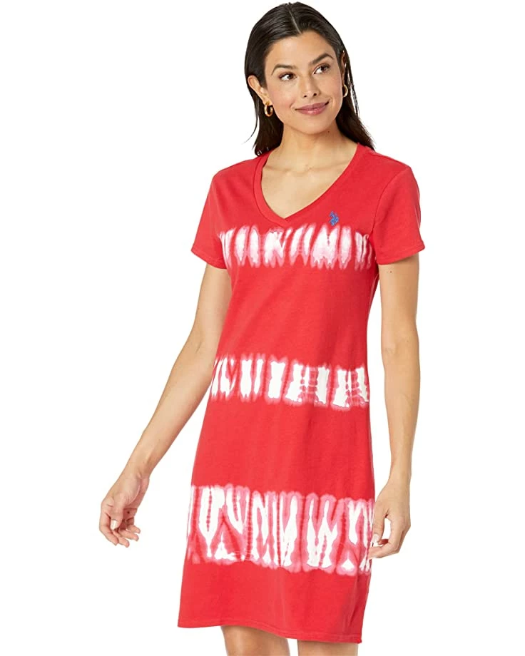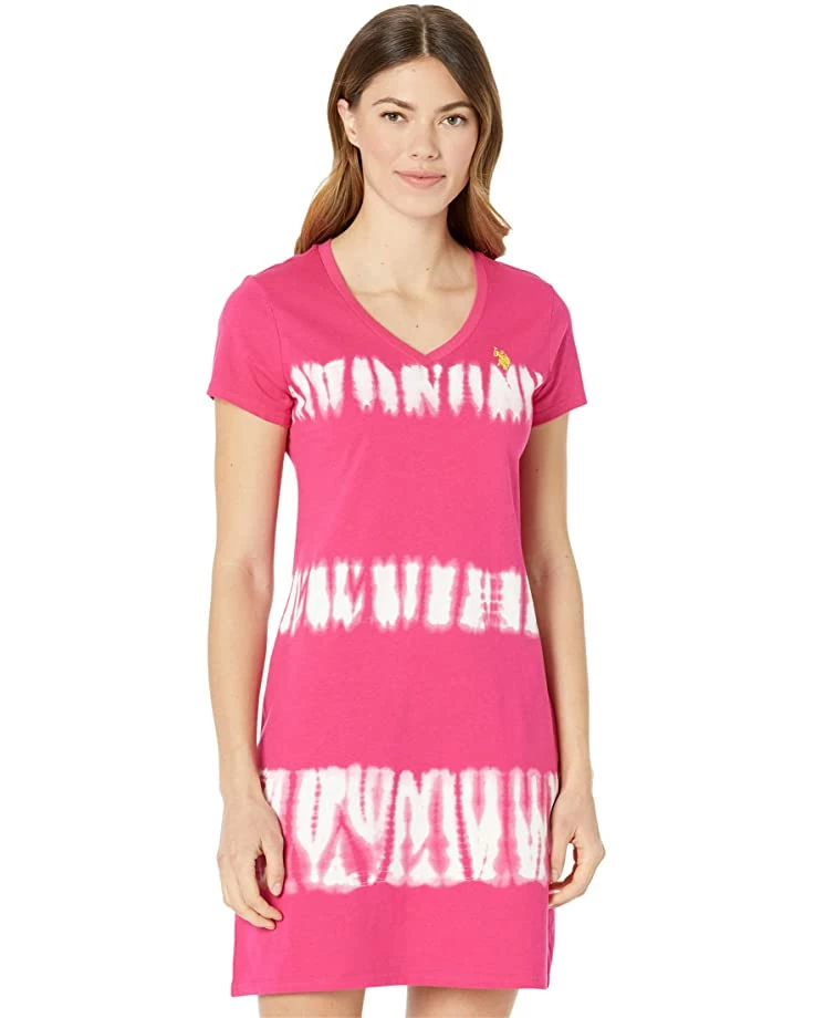 - Featuring an allover stripes design, the U.S. POLO ASSN® Tie-Dye Stripe Sneaker Dress comes with signature brand detailing on the chest.