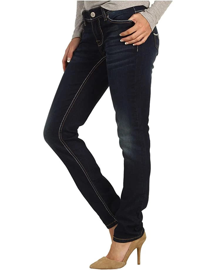 - Mid-rise jean fits curvy through the hip and thigh and flaunts a skinny, fitted leg.