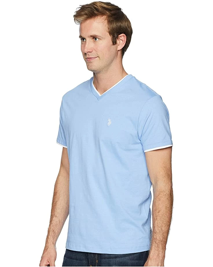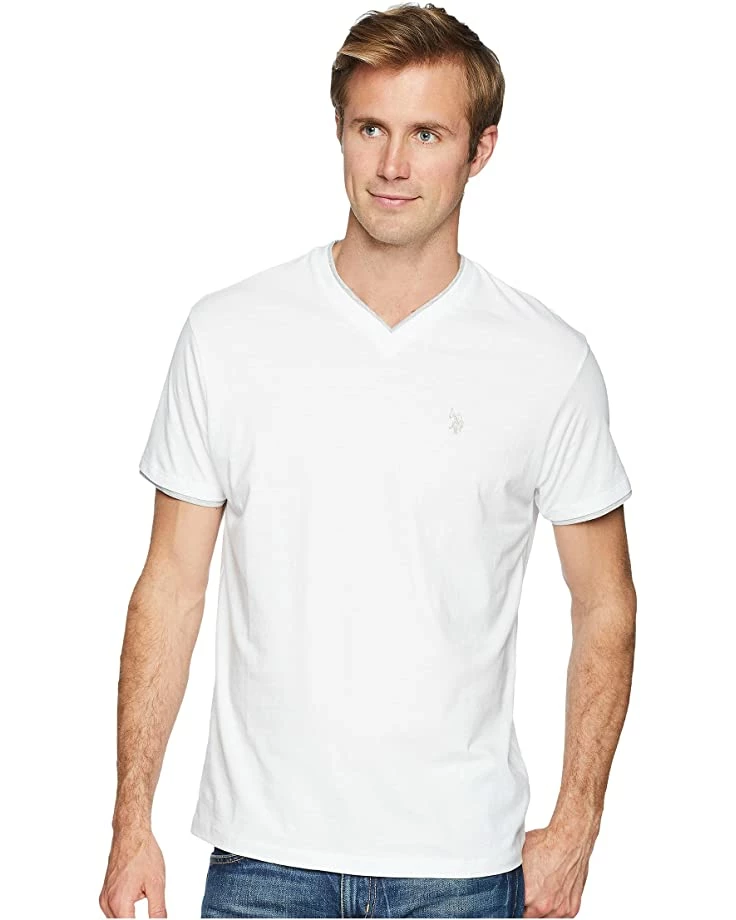 - Create the perfect casual look with a little help from the U.S. POLO ASSN.® Double Ringer V-Neck-04 tee.