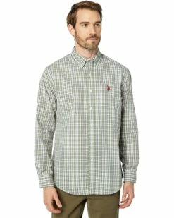 - Complete your look with the classic style of the U.S. POLO ASSN.® Long Sleeve CVC Yarn-Dye Plaid Woven Shirt.