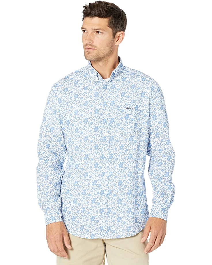 - Add some flair to your basic look with the U.S. POLO ASSN.® Long Sleeve Floral Print Woven Shirt. This cotton dress shirt is constructed with a button-down collared neck, full button front closure, adjustable cuffed long sleeves, front left chest pocket with logo patch and an allover floral pattern that will have your style noticed.