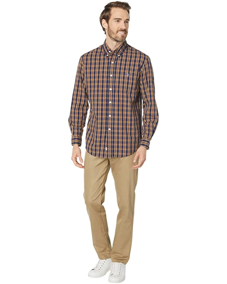 - You can never go wrong with this classic U.S. POLO ASSN.® Long Sleeve Yarn-Dye Poplin Dobby Woven Shirt. Pair it with trousers for a formal look, or wear it with jeans to create a casual look!
