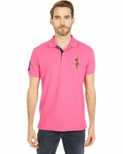 - Showcase your easy-going style with the effortless U.S. Polo ASSN. Pique Polo w/ Multicolor DHM.