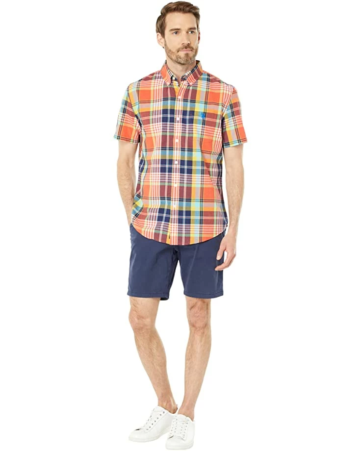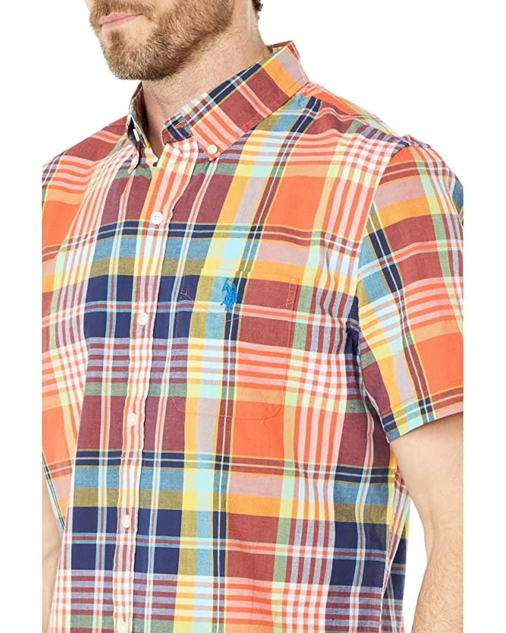 - Keep it chic and stylish wearing the U.S. POLO ASSN® Short Sleeve Madras Plaid Woven Shirt. It comes with a curved hemline.