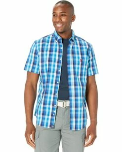 - The U.S. POLO ASSN.® Short Sleeve Medium Plaid Stretch Woven Shirt is all about easy dressing that still feels pulled together and polished. This shirt can be dressed up or dress down based on your lifestyle.