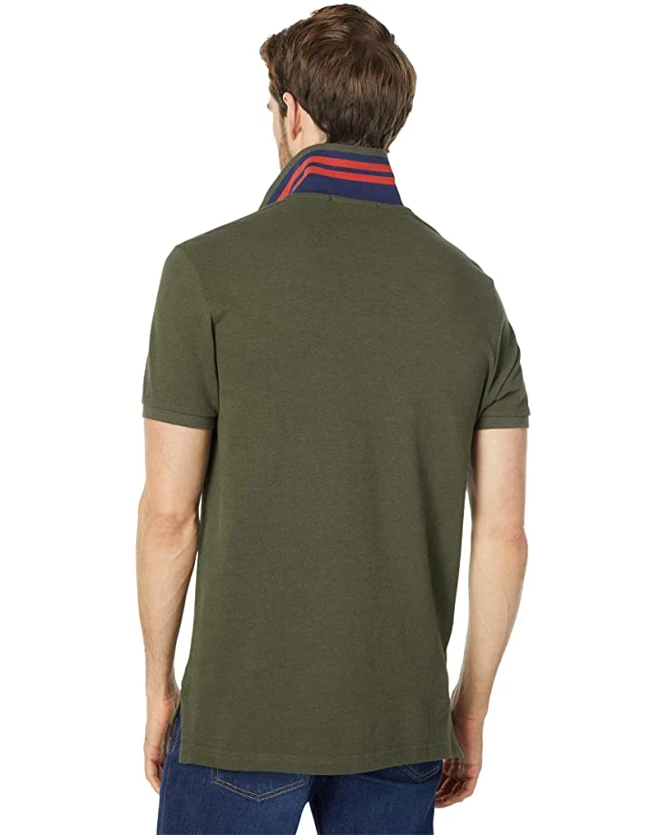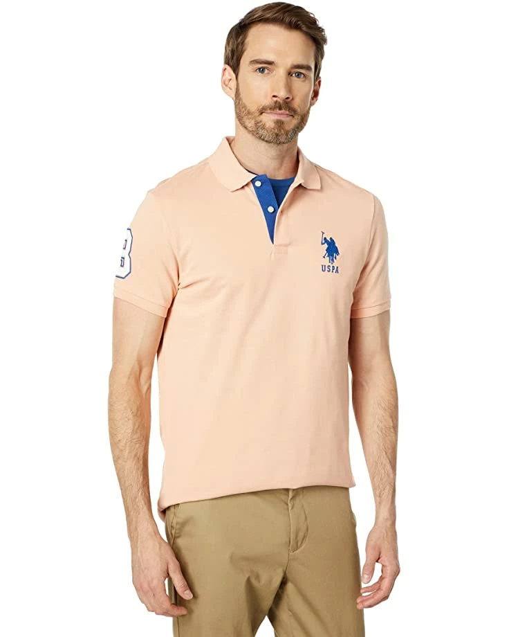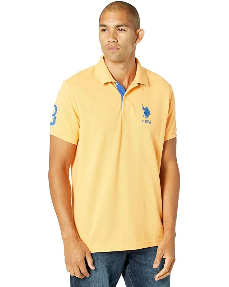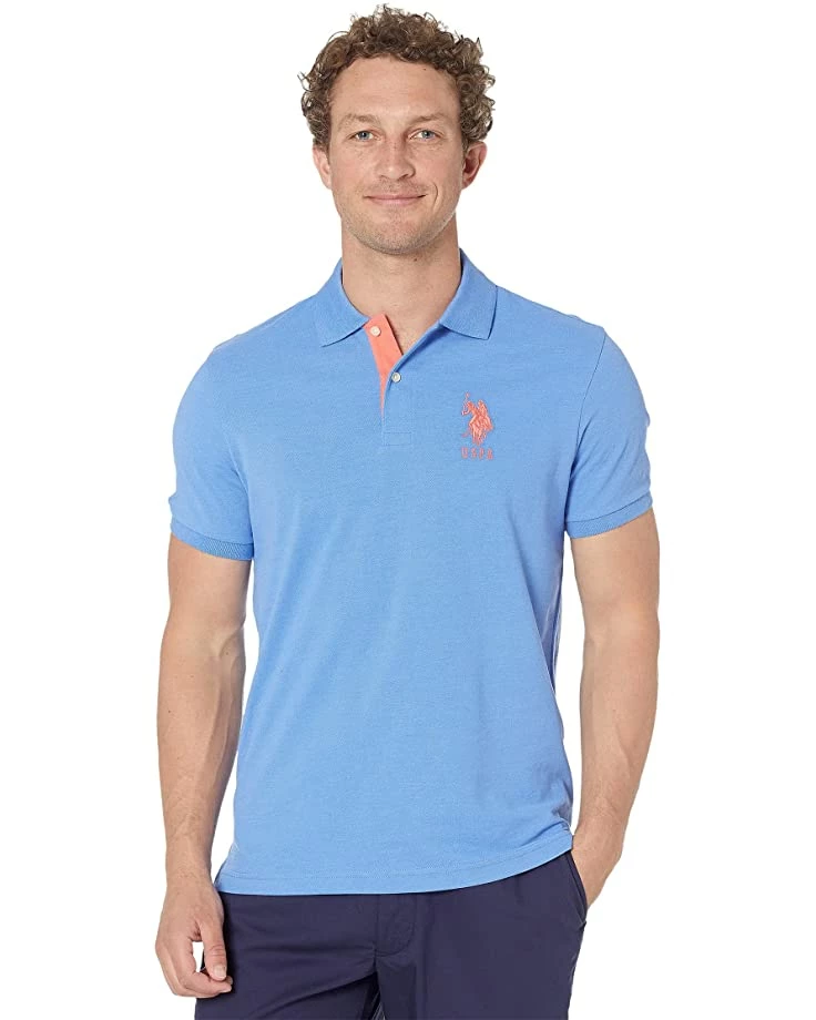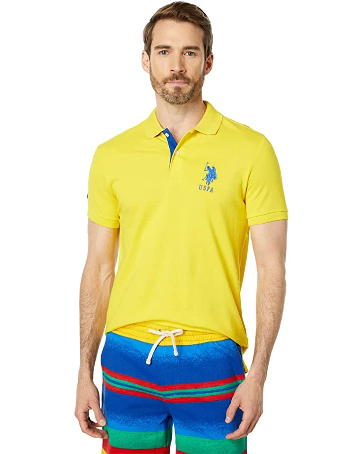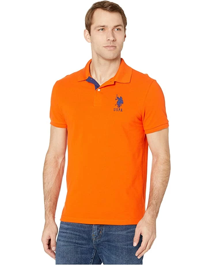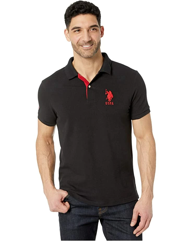 - Exemplify classic-cool style in the laid-back U.S. POLO ASSN.® Slim Fit Big Horse Polo w/ Stripe Collar. The short-sleeve design boasts slim-fit silhouette in a solid colorway with contrasting pops of color.