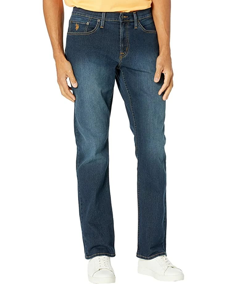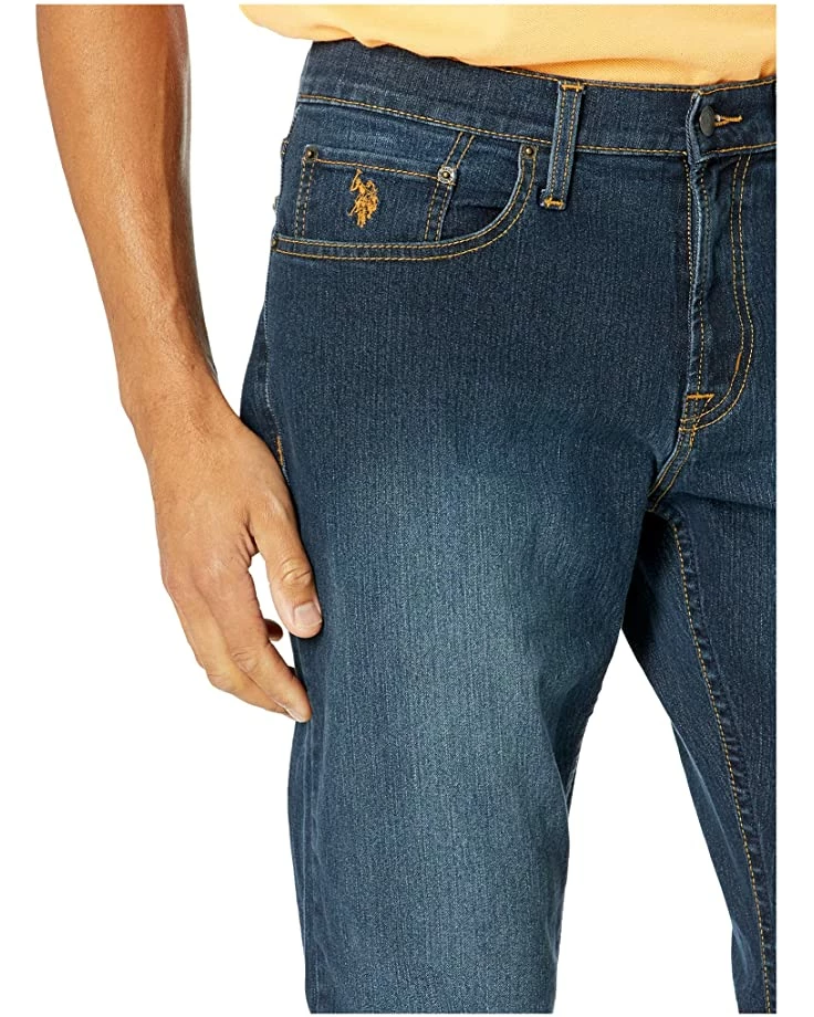 - The U.S. POLO ASSN.® Slim Straight Stretch Five-Pocket Denim Jeans in Blue offers a classic look, iconic style, and total comfort.